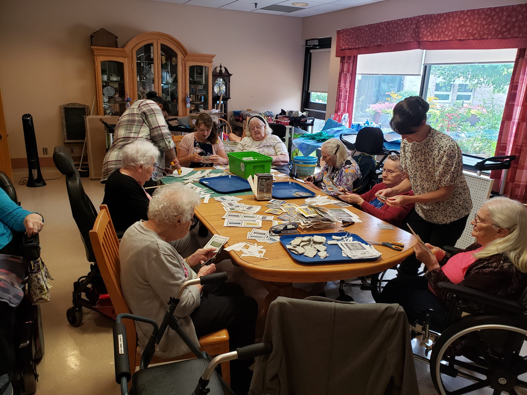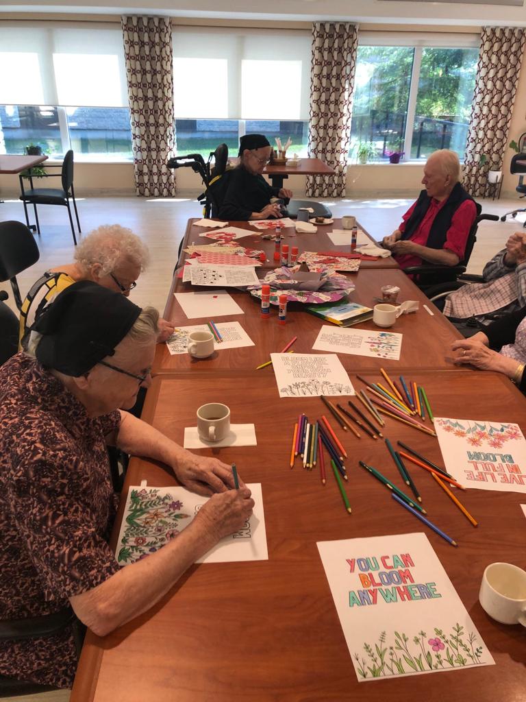 Residents from all care areas played a vital role in making Salem in Full Bloom float a reality. They used their artistic skills to craft large paper flowers and paint the vibrant blue sky background. But their contributions didn’t stop there. They also made seed paper, colored quotes, stapled everything together, and guided the staff on where to attach decorations. It was a true team effort, highlighting the diverse talents of everyone.